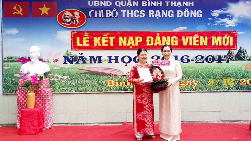 Chi bộ trường THCS Rạng Đông thêm 1 Đảng viên, Đảng ta thêm sức mạnh. Để đồng chí Nguyễn Ngọc Kim Yến hiểu rõ hơn về quyền lợi và nghĩa vụ của mình khi được đứng trong hàng ngũ của Đảng. Đồng chí Tống Nguyễn Diễm Chi đã lên phát biểu động viên và giao nhiệm vụ cho đồng chí Kim Yến.